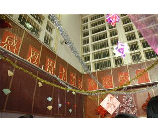 精心装扮了自己的游园场地,主题布置以中国结、红灯笼等独具中国特色的装饰品为主,在场地上渲染出节日气氛,同时在场地前挂出节日对联“庆元旦喜新春,缘聚法大。贺祥瑞戏游园,乐在民商。” 最后将学生会工作人员亲手制作的各种装饰布满整个场地,让场地看上去光彩夺目,,也为民商院准备的小游戏“一线牵”烘托出了节日喜庆气氛,让游玩的同学们充分地感受节日氛围,尽情地享受欢乐。