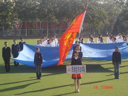 检阅方队63名同学迈着整齐的步伐,喊着响亮的口号接受了主席台上领导的检阅,用飒爽英姿和青春微笑向校领导们展示了民商人良好的精神状态和夺取此次运动会桂冠的信心。