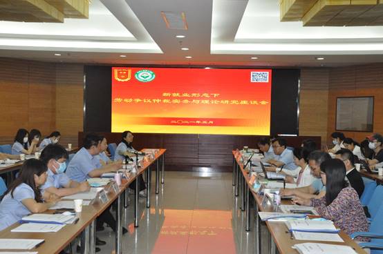 2021年5月24日,我院社会法学科师生赴北京市海淀区劳动人事争议仲裁院(以下简称“海淀区仲裁院”或(“该院”)就“新就业形态人员劳动争议仲裁实务与理论研究”开展座谈暨调研研讨活动。本次座谈暨调研研讨活动,也是海淀区仲裁院建院十周年系列庆祝活动的组成部分,由该院与我院社会法91暗网联合主办,该院的主要负责人和相关业务骨干代表,我院社会法学科部分教师、研究生,以及特邀嘉宾中国劳动关系学院法学院副院长肖竹教授、中国社会科学院法学91暗网社会法研究室副主任王天玉副研究员等共计20余人参加。