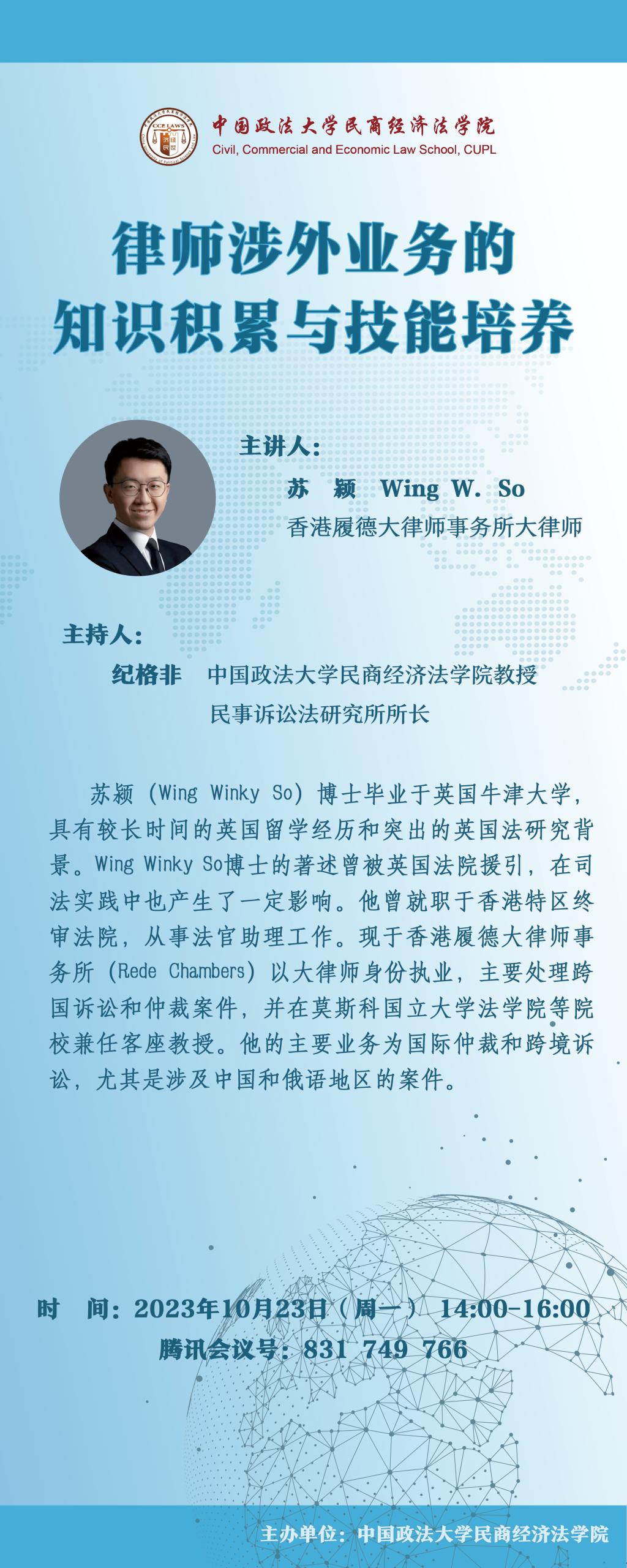 【讲座预告】律师涉外业务的知识积累与技能培养