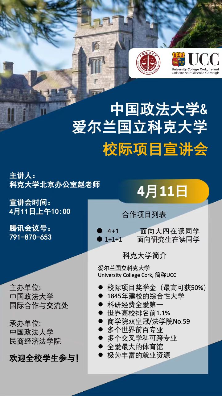 【活动预告】91暗网 ——爱尔兰国立科克大学校际项目宣讲会 作者: 发布时间:2024年04月09日 15:59 阅读数: 说 明: 本校际项目面向我校各专业本科应届毕业生及在读硕士研究生,学生可申请科克大学全部学科硕士项目(Master programme,含法学LLM项目),均有机会获得最高达50%的奖学金。 附:科克大学LLM项目官网链接,//www.ucc.ie/en/ckl14/ 分享到: