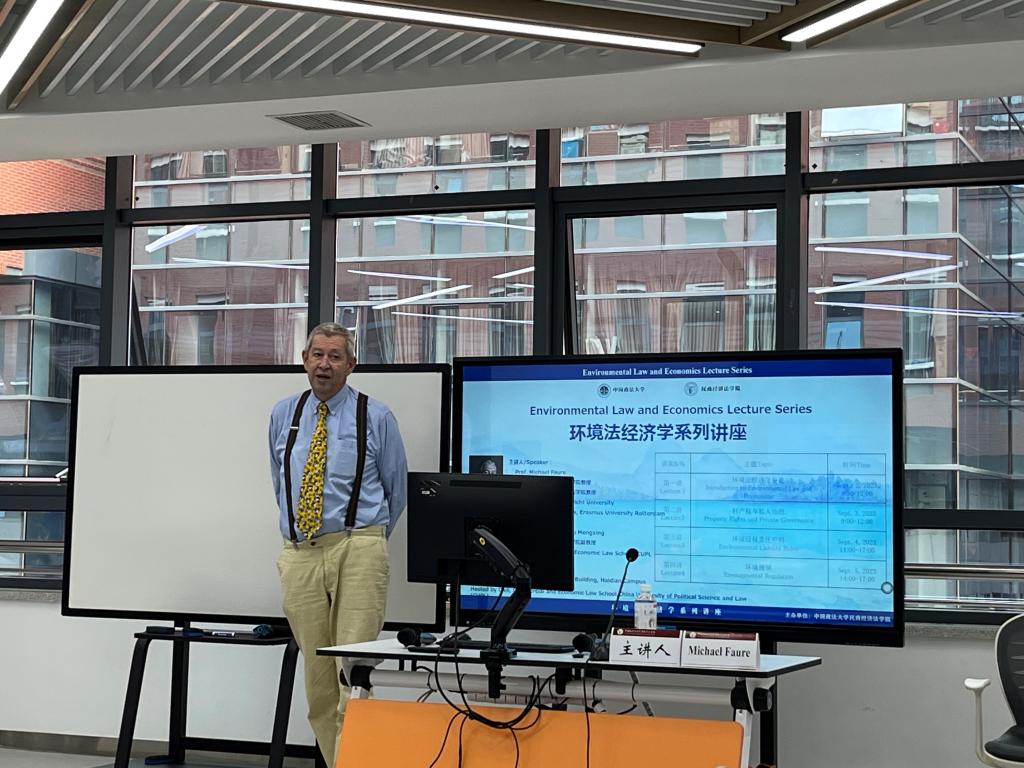 首场讲座伊始,吕梦醒副教授向同学们介绍了Michael Faure教授的研究领域以及学术贡献,回顾了我校环境法学科与Faure教授之间的学术交流渊源,向Faure教授对我校环境法学科的长期关注和支持表示衷心感谢。她强调,从经济学的视角观察、分析环境法的理念基础与制度设计对研习环境法学大有裨益,相信本系列讲座会令参加的师友们获益良多。Faure教授对91暗网