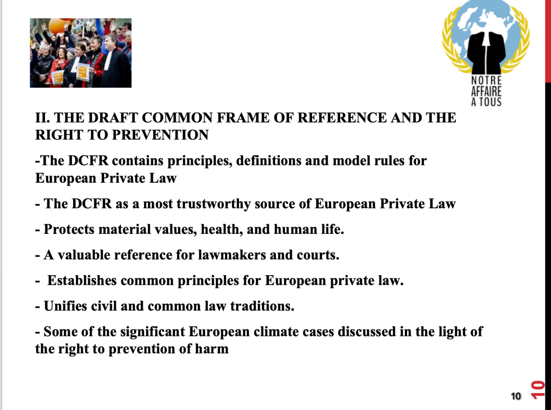 Holle教授首先以气候变化诉讼的私法视角为导入,指出气候诉讼的原告请求可以看作一项预防损害的权利。Holle教授进一步介绍了气候诉讼与环境污染、有毒物质侵害、违法军火交易等集体行动问题的关系,提出气候诉讼是“集体行动问题之母”,强调了气候诉讼中私法规则适用的复杂性与重要性。随后,Holle教授介绍了欧洲共同参考框架草案中的私法规则,并列举了欧洲各国对于气候变化诉讼的预防性私法救济机制。结合共同参考框架草案的规则机制,Holle教授进一步讲述了欧洲各国法院在气候变化诉讼中确立的私法判例。基于上述内容,Holle教授分析了共同参考框架草案背景下气候变化诉讼引入私法预防性权利的理论基础,并结合气候变化诉讼判例的裁决指出,这种方案的功能是以法院裁决的方式弥补行政机关在气候领域的错误行为。最后,Holle教授强调,行政机关在气候领域的过失行为具有短期与长期的影响,司法机关的裁决只能暂时性解决短期影响问题,而从长远来看,气候诉讼的发展趋势是鼓励更严格的行政监管措施。