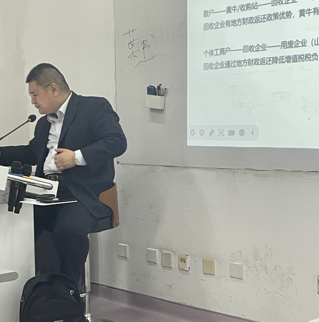 讲座伊始,李辉老师对王强律师的到来表示热烈欢迎,并简要介绍了讲座的重要意义,为讲座拉开序幕。王强律师结合自身丰富的税务律师从业经验,深入剖析了再生资源、医药、成品油等重点行业的税务风险与典型案例,为同学们带来了一场兼具理论深度与实践价值的知识盛宴。
