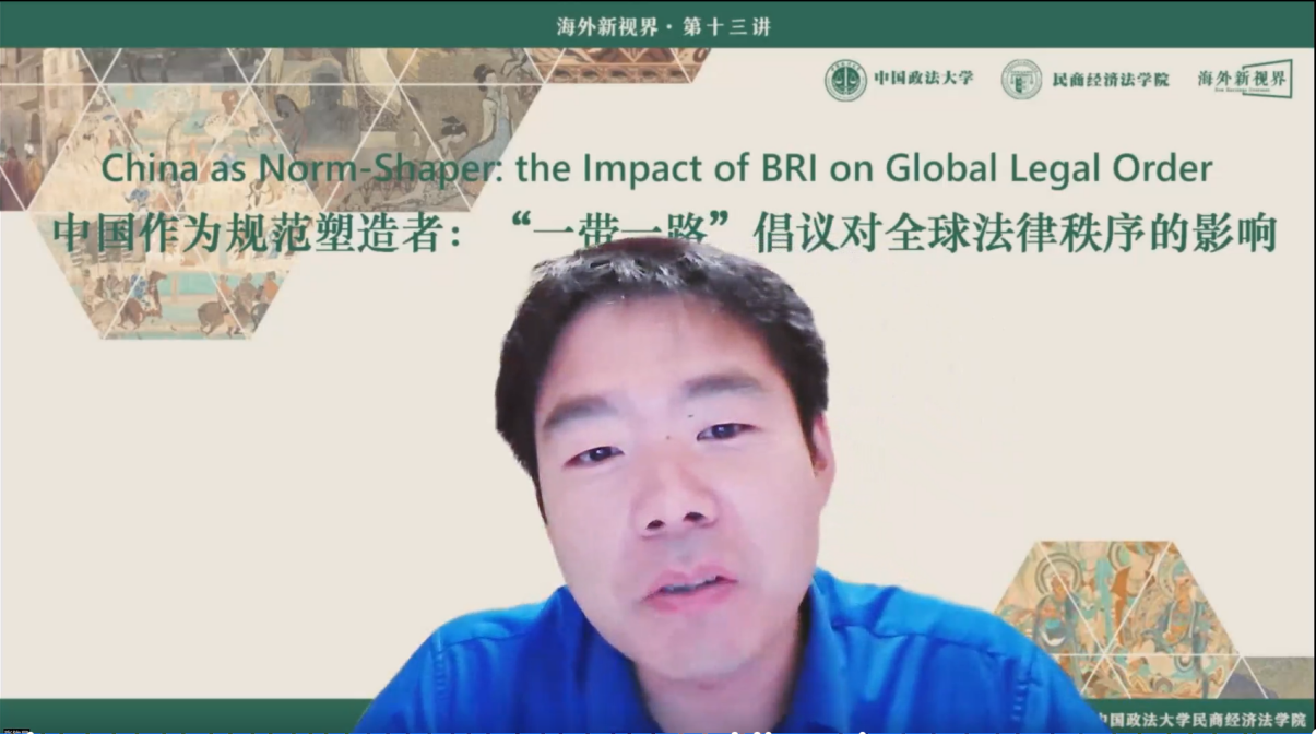 On the evening of June 15, 2023, the 13th lecture of the "New Horizons Overseas" series was successfully convened online by the Civil, Commercial, and Economic Law School at China University of Political Science and Law (CUPL). Ivan Cardillo, a teaching fellow from the Faculty of Law, University of Trento, and the Director of the Institute of Chinese Law, delivered a seminal lecture titled "China as Norm-Shaper: The Impact of BRI on Global Legal Order." Professor Zhang Qinyu, the Director of the Economic Law Institute, served as the moderator of the lecture.