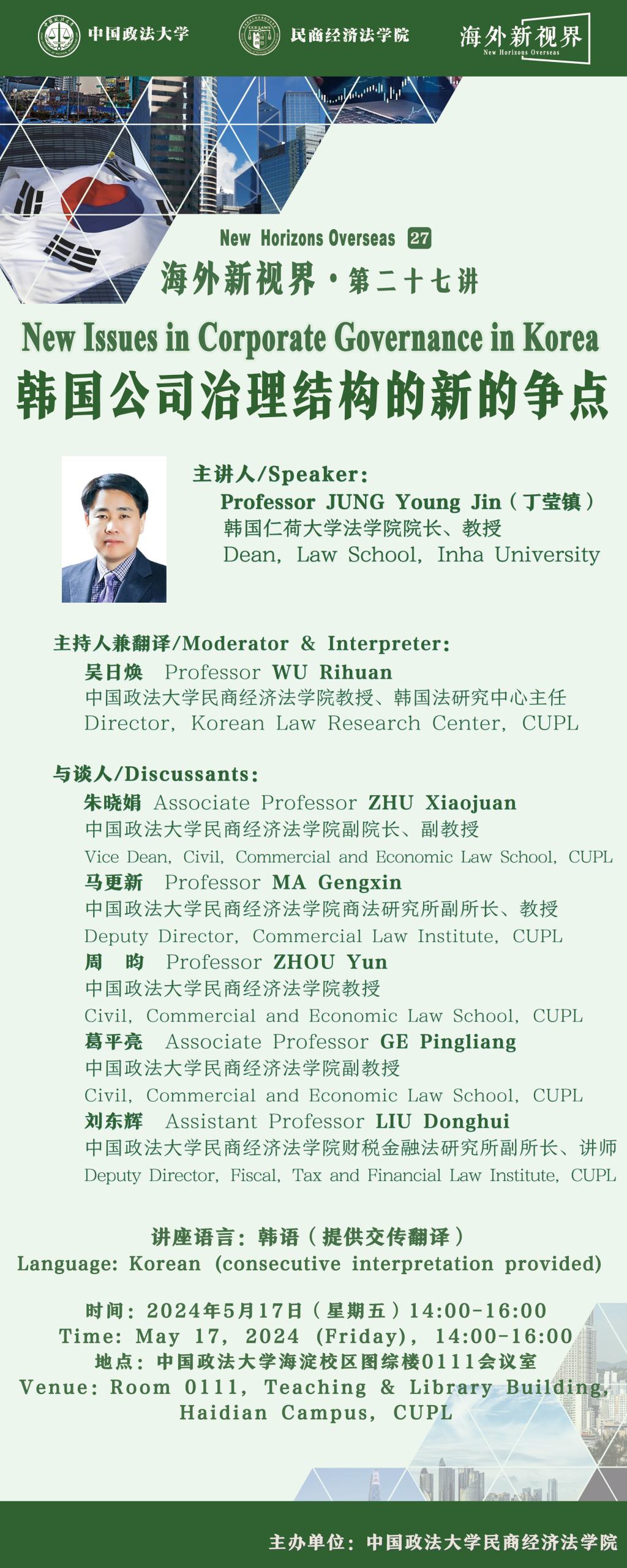 New Horizons Overseas: Lecture 27 | New Issues in Corporate Governance in Korea by Professor JUNG Young Jin, Inha University